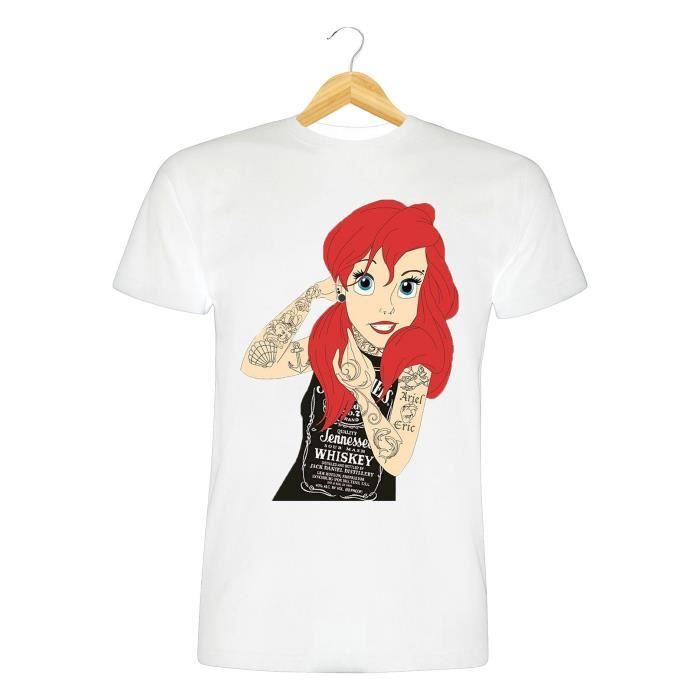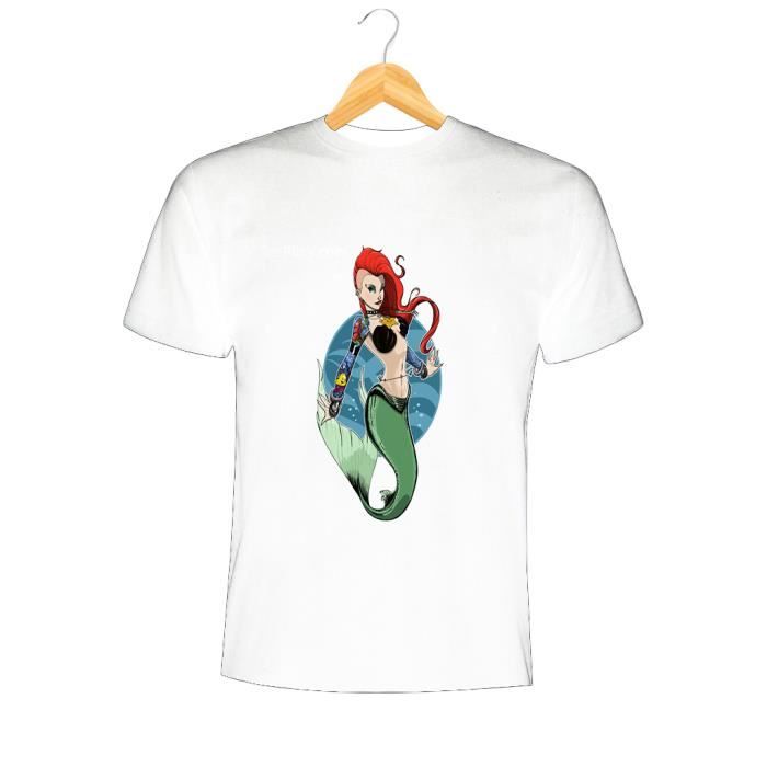 T Shirt Ariel Tatouee Coupe Homme T Shirt Princesse Disney Punk Freaky Pink